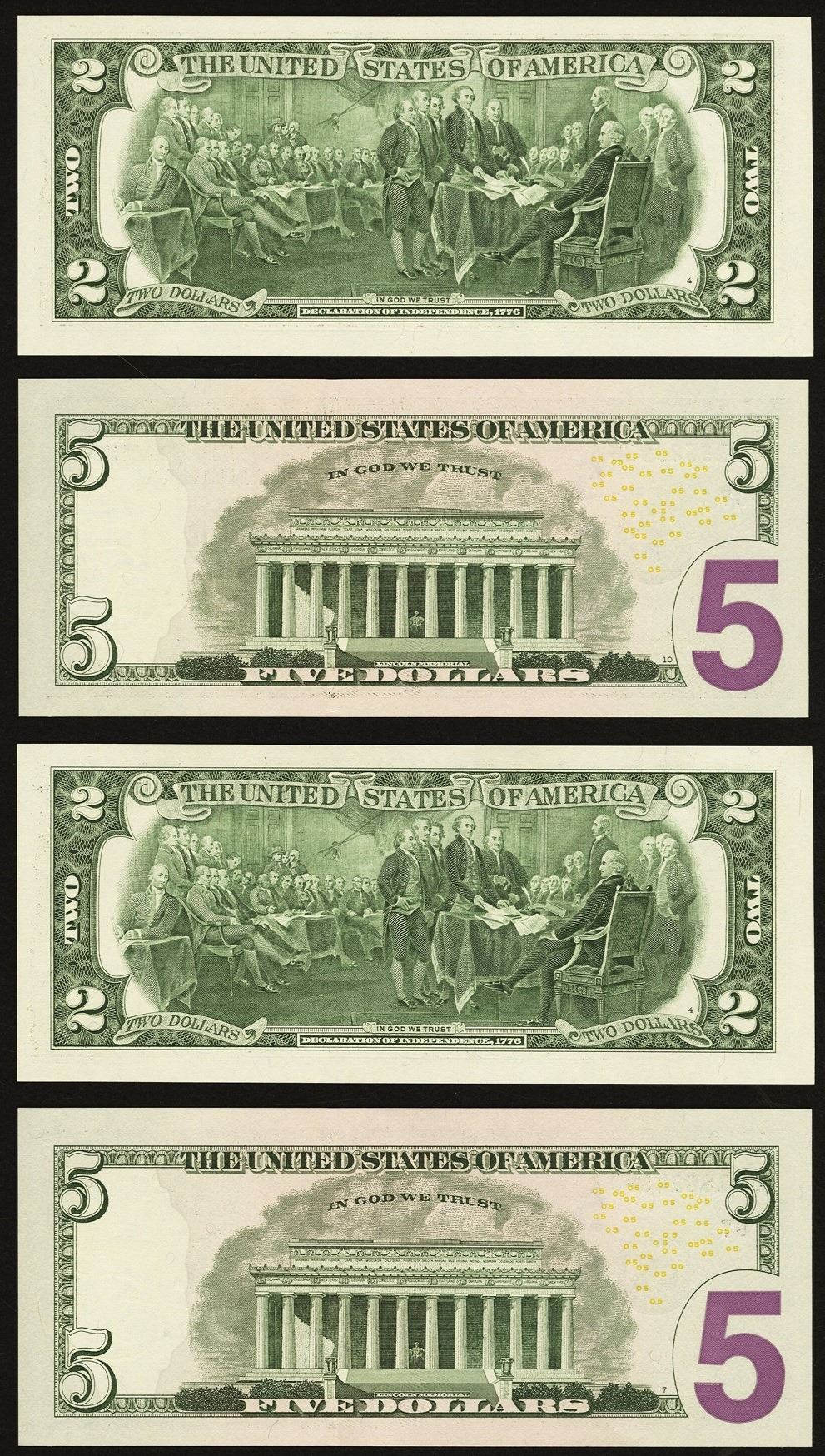 This set honors the BEP's first 150 years from 1862-2012. The first four digits of the serial number for the $5 begin with "1862" and the first four of the $2 are "2012." Original packaging for this lot includes a history of the BEP booklet.