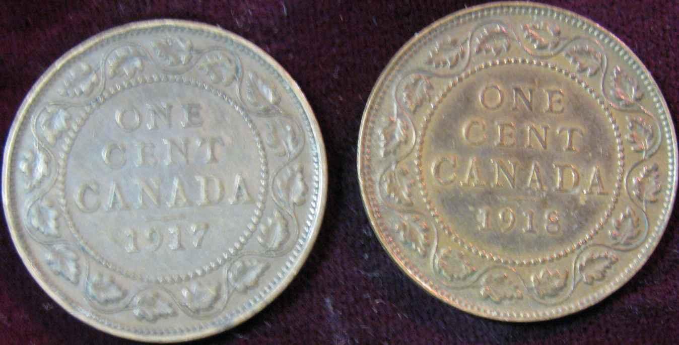 151. 1917 & 18 Canada Large Cents. VG-VF.
