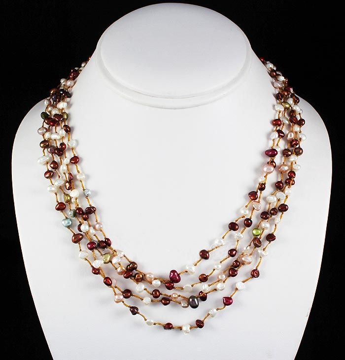 19 inches Multi-color 5 Strand Thread Freshwater Pearl Necklace w/ Botton Lock