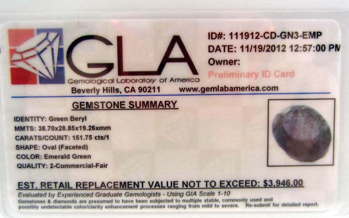 Comes w/ GLA Appraisal of $3,946.00. 38.70 by 28.85 by 19.26 mm