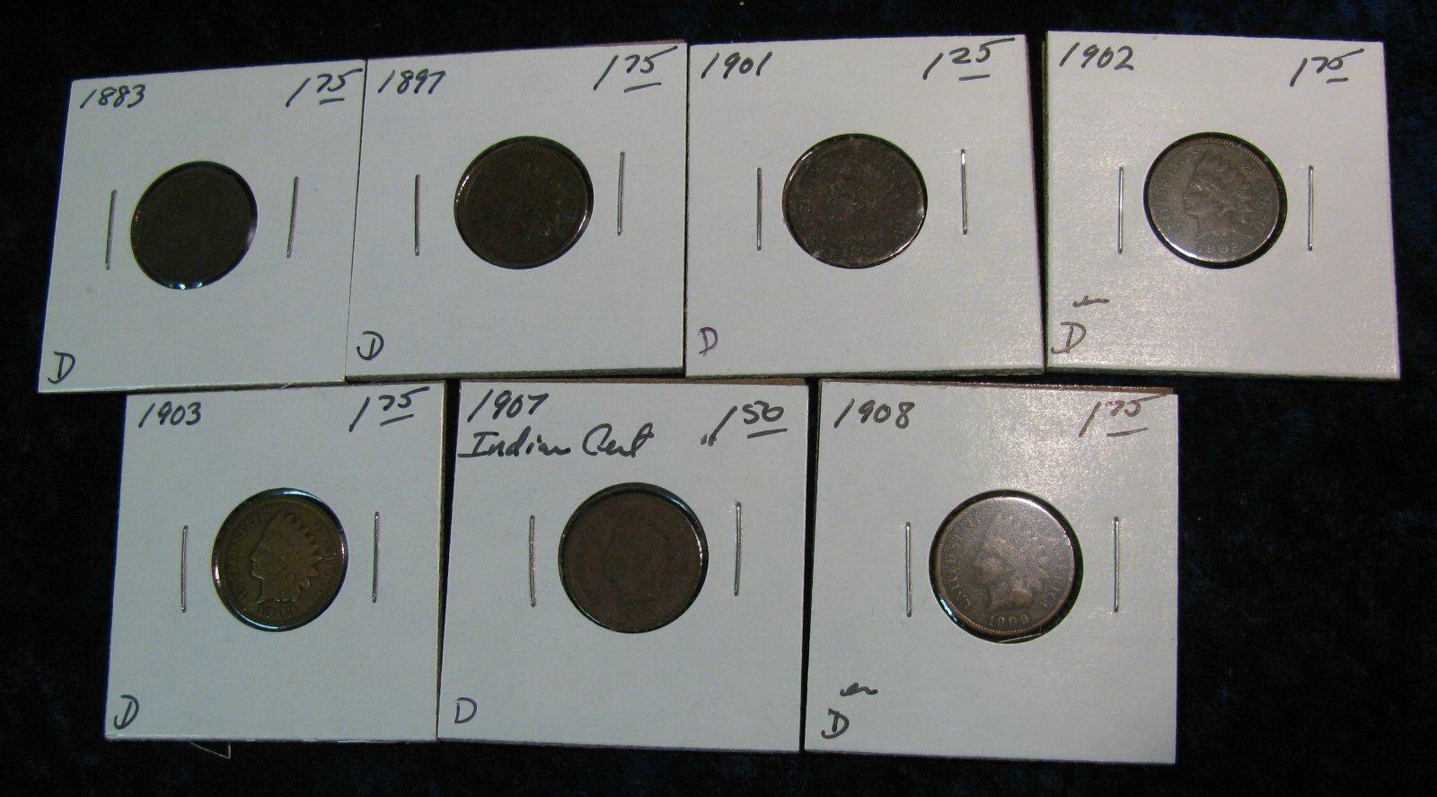 1513. 1883, 97, 1901, 02, 03, 07, & 08 Indian Head Cents