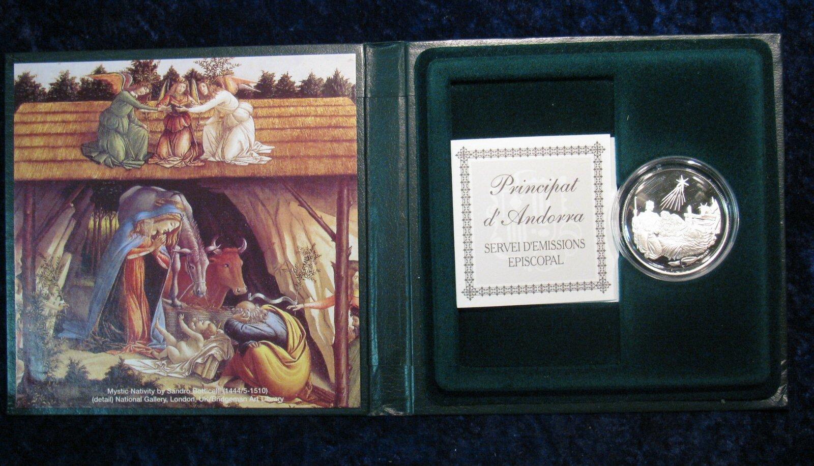 1513. 2000 Nativity Silver Proof Coin In Display Folder. Mystic Nativity By Sandro Botticelli.