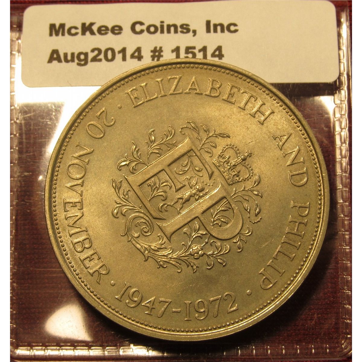 1514. 1972 Elizabeth & Philip Silver Anniversary commemorative crown from Great Britain