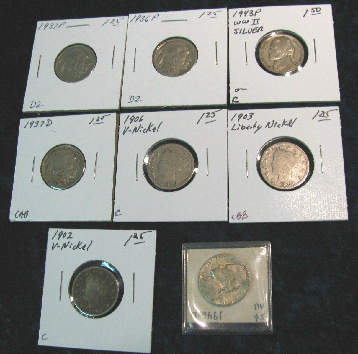 1515. 1902, 03, 06. 36P, 37P, D, 43P, & 46D U.S. Nickels.