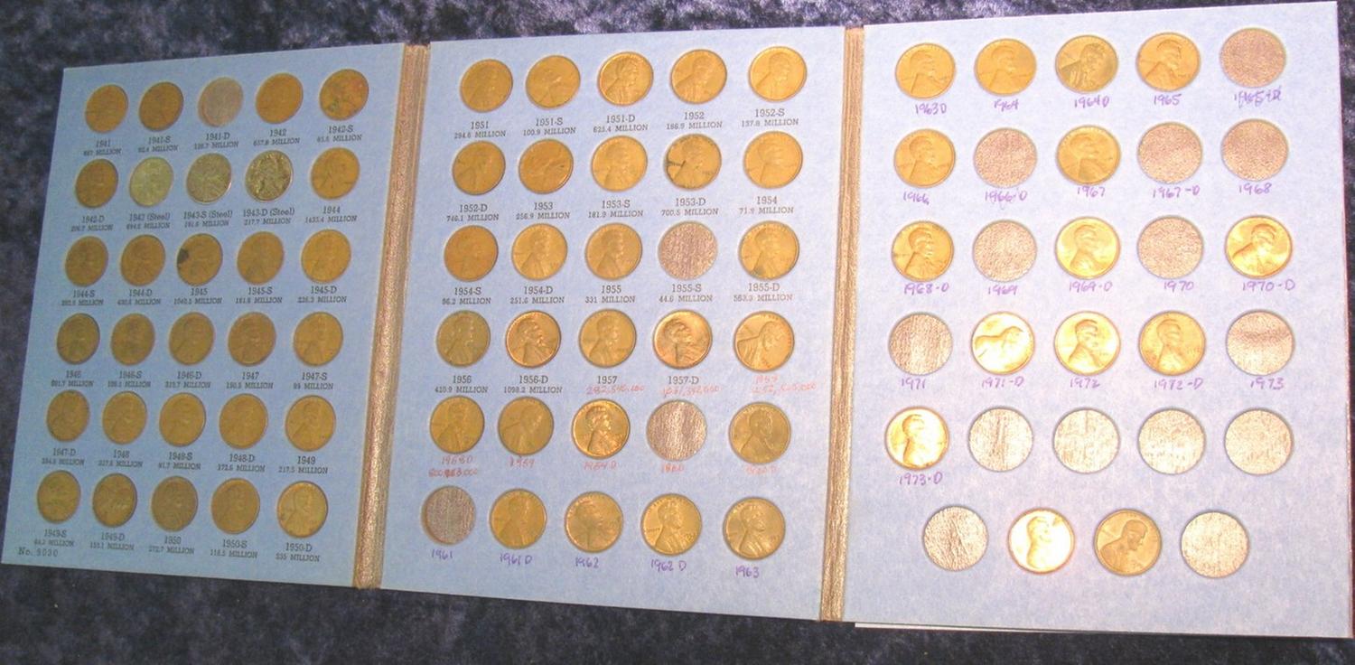 1515. 1941-73 Partial Set of Lincoln Cents in a Blue Whitman folder.