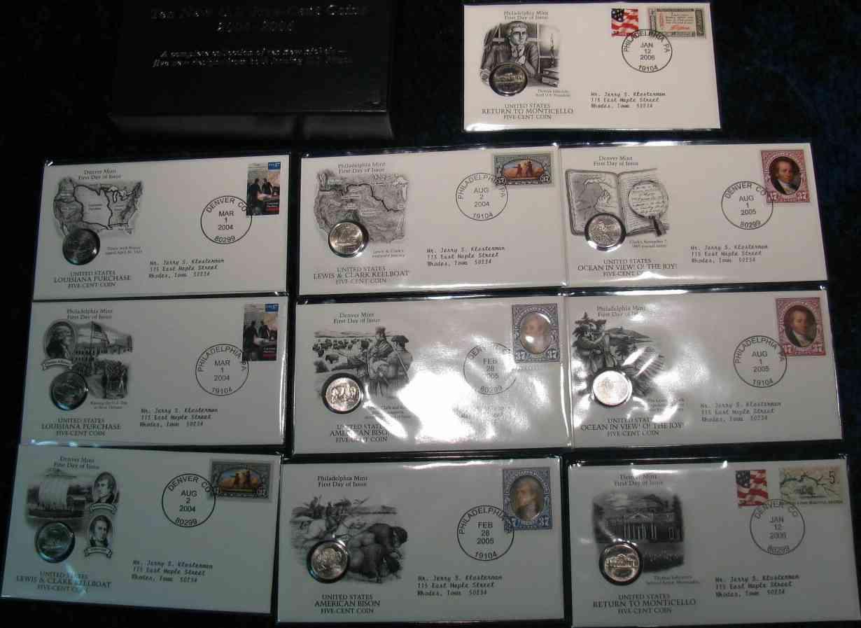 1516. 2004-05 Westward Journey Nickels FDC Set In Box. Postal Commemorative Society 10 Card Set.
