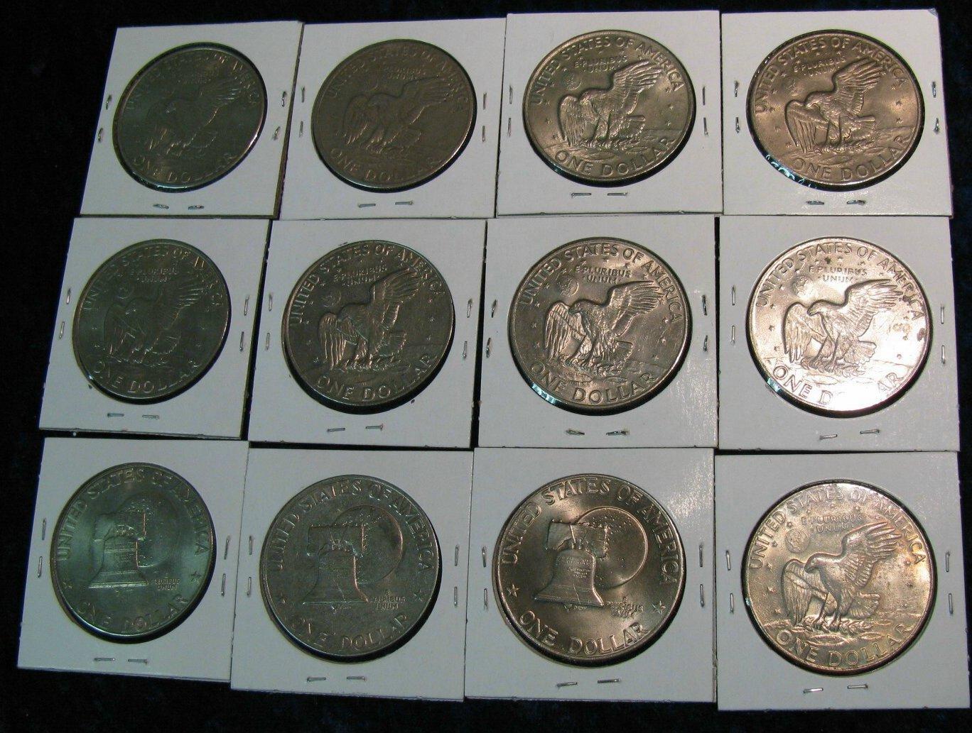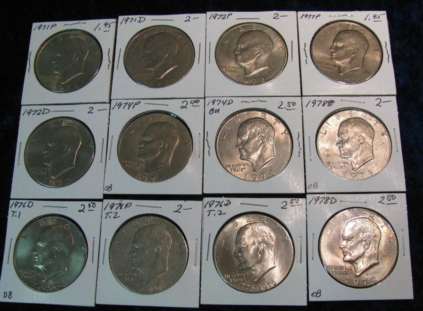 1517. 1971-78 Partial Set of Eisenhower Dollars. AU-BU. (12 different dates, mint marks, or varieties.