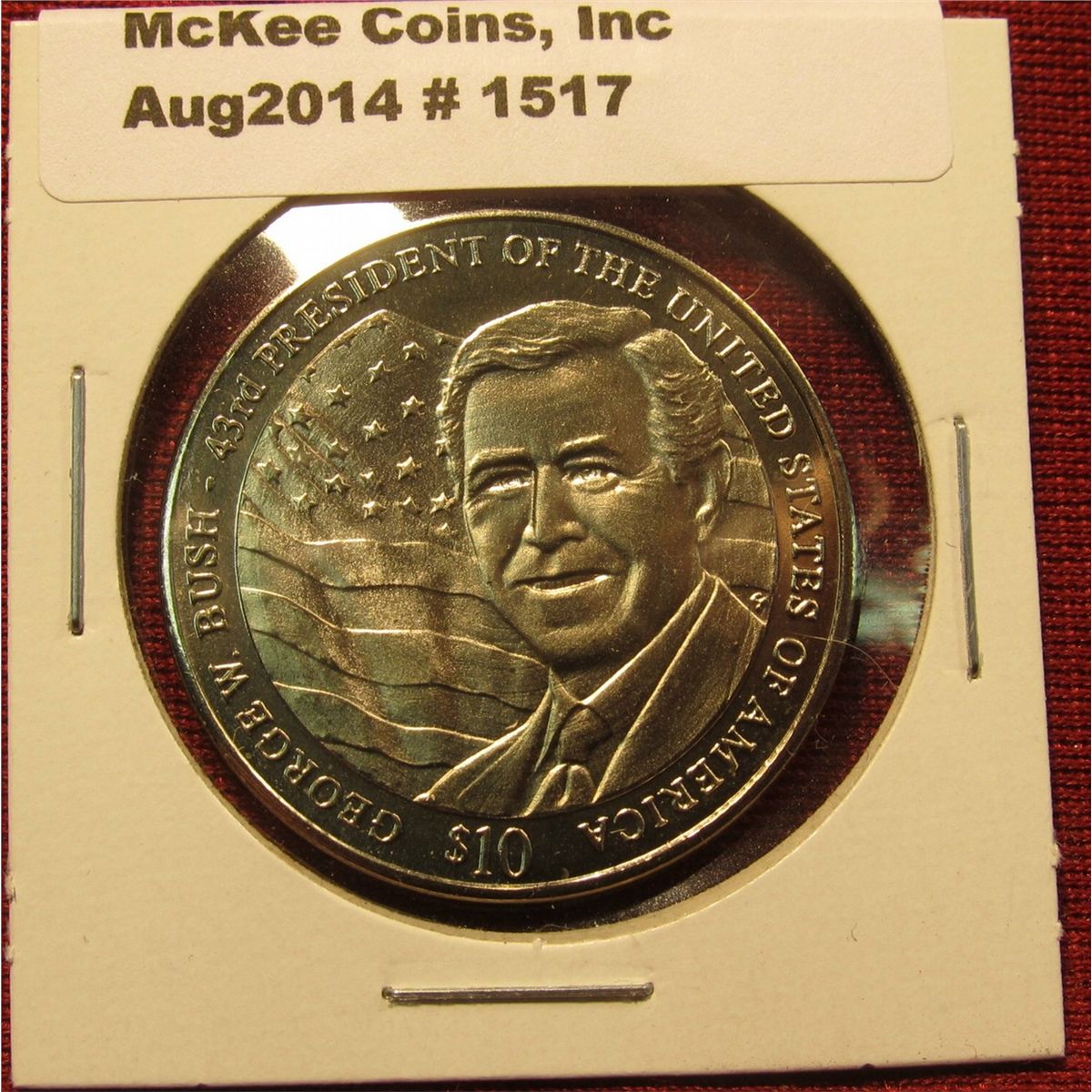 1517. 2002 Liberia $10 commemorative coin – George W. BU sh 44th President of US