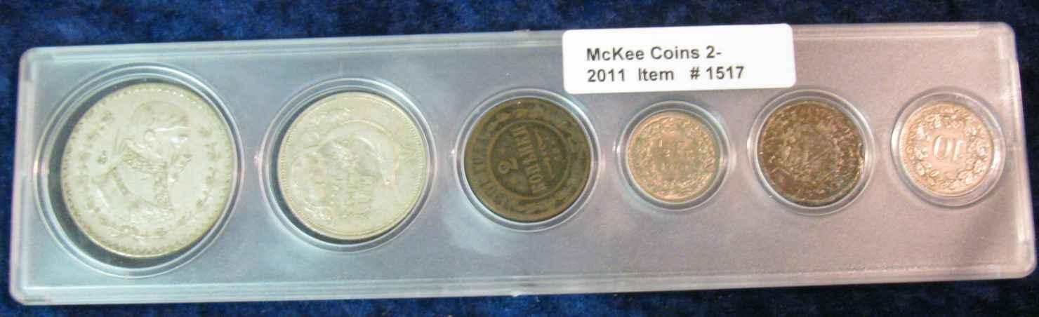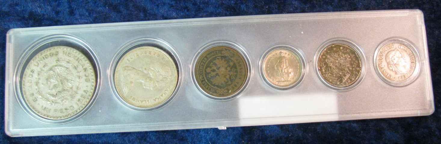 1517. (6) Foreign Coins In Display Case. Some Silver.