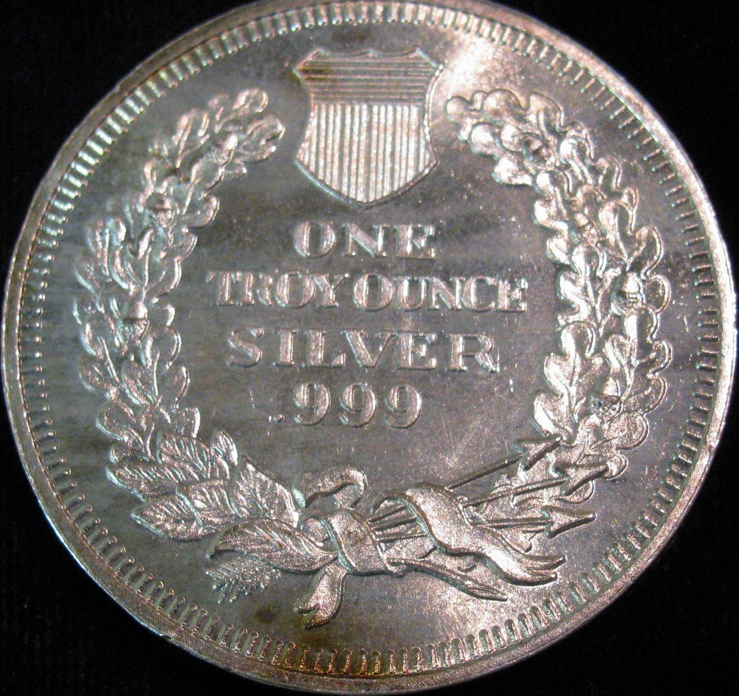 1517. Indian head Cent Design One Ounce .999 Fine Silver. BU.