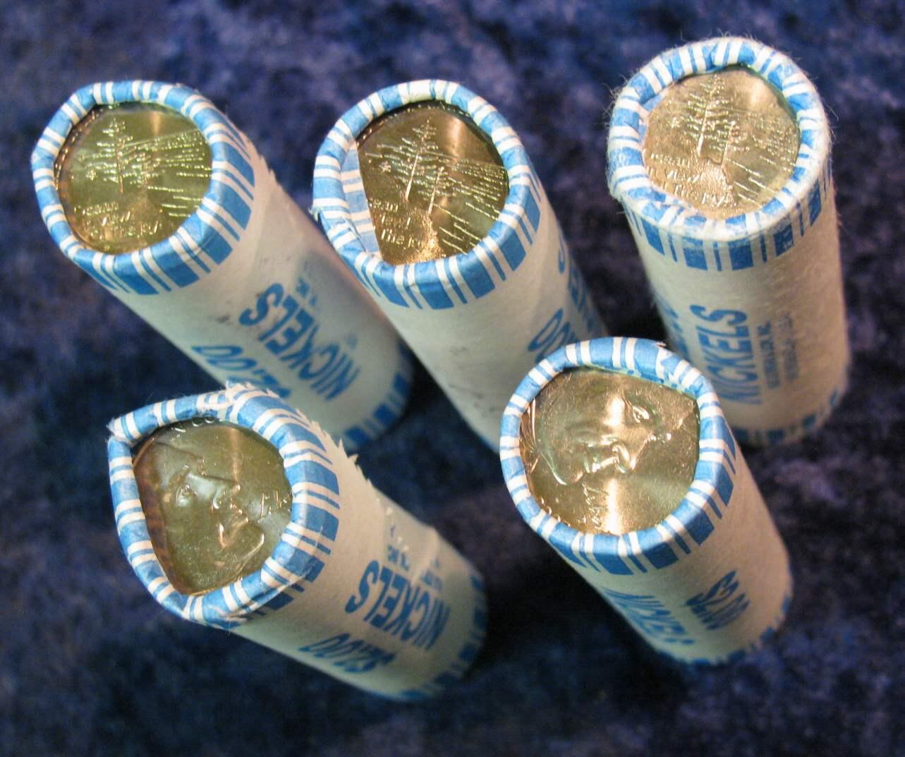 1518. (5) 2005 D Original BU Bankwrapped Ocean View Nickel Rolls.