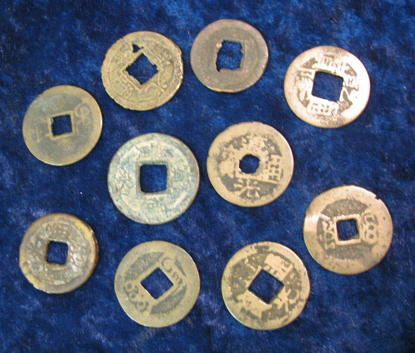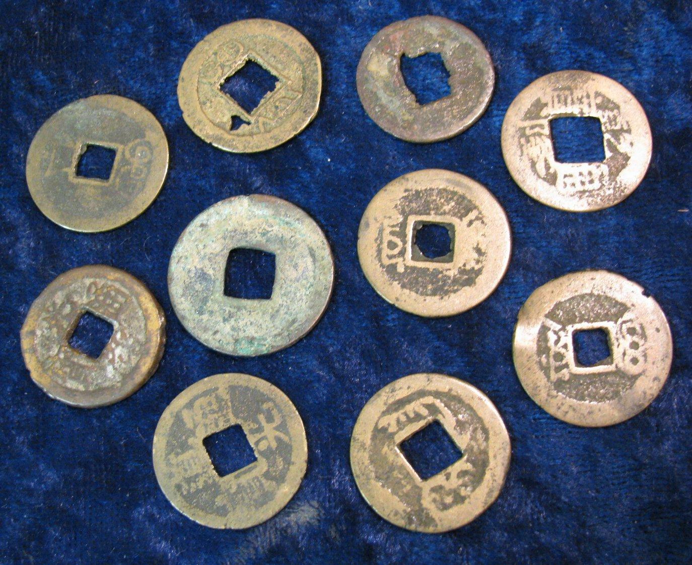1519. (10) Ancient Chinese Brass Coins with square coins.