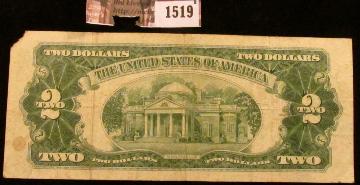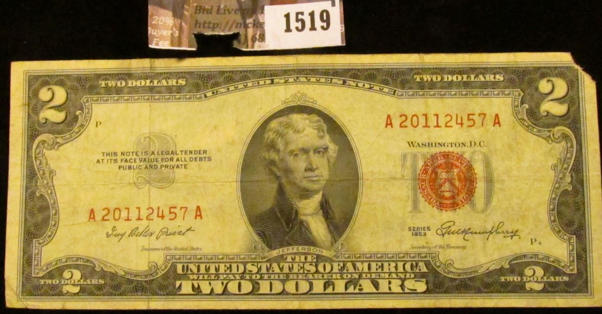 1519 . Series 1953 United States Note, Red Seal, small piece of upp