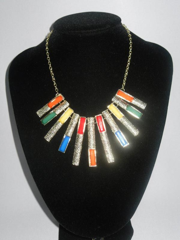 151CTW MULTICOLOR HANGING BARS BRASS NECKLACE;18INCH **|**|** 151CTW MULTICOLOR HANGING BARS BRASS NECKLACE;18INCH ; MSRP: $200