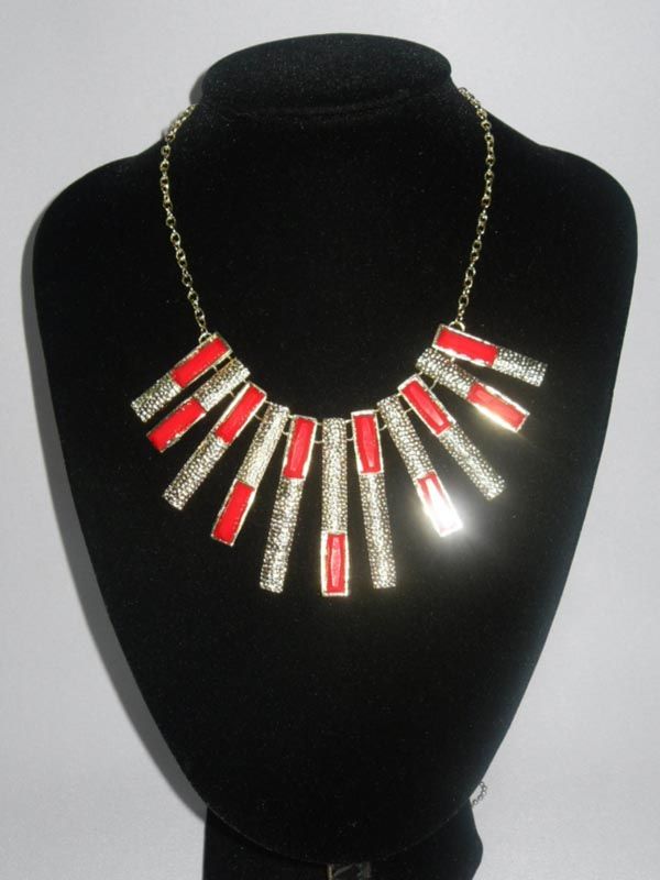 151CTW RED HANGING BARS BRASS NECKLACE;18INCH **|**|** 151CTW RED HANGING BARS BRASS NECKLACE;18INCH ; MSRP: $200