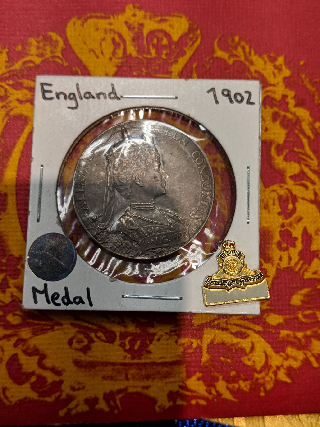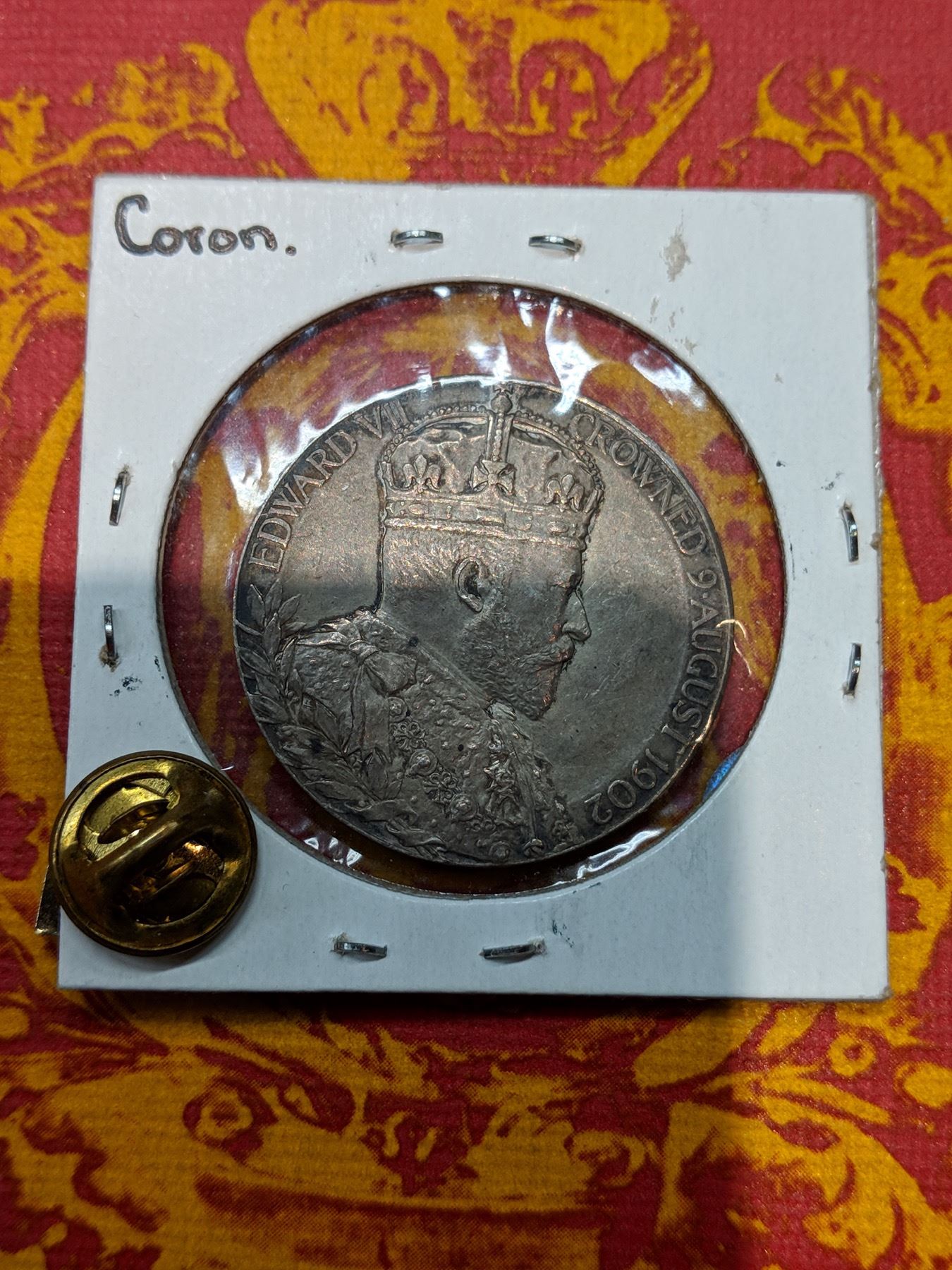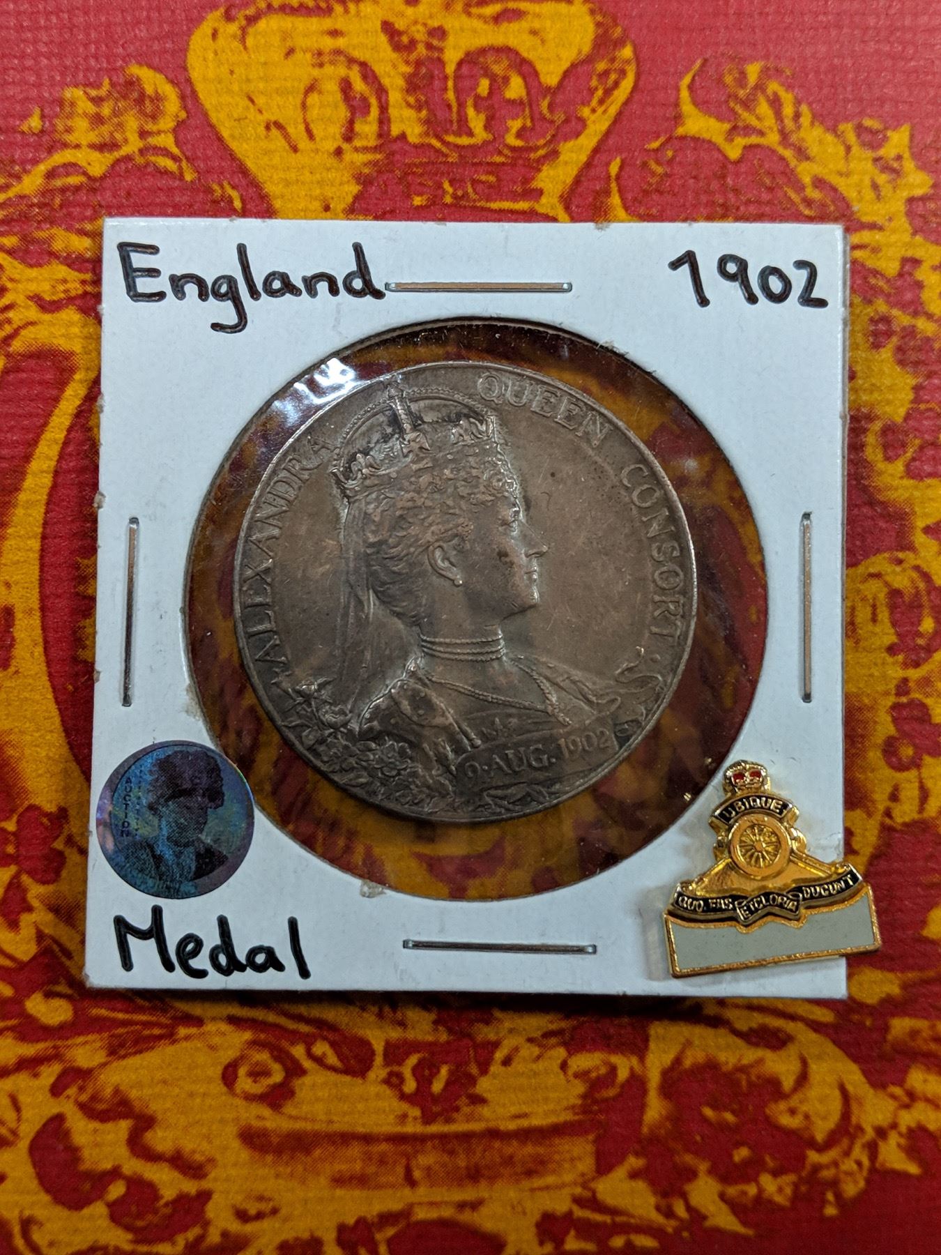 (152)-1902 UK Coronation Alexandra Queen & Edward VII Silver Medal with pin