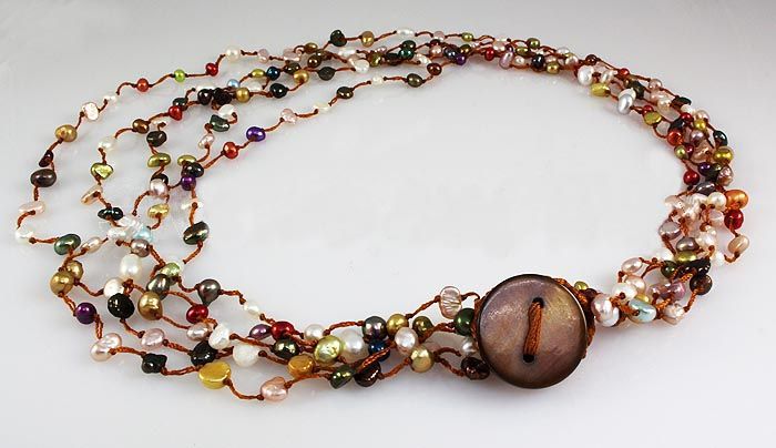 19 inches Multi-color 5 Strand Thread Freshwater Pearl Necklace w/ Botton Lock