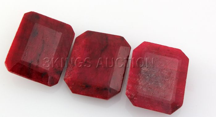 152.86ctw RubyEmeraldCut LooseGemstone lot of 3 **|**|** Mix Sizes 25-26x21-22x6-8mm Natural Ruby Gemstone Flat Emerald Shape lot of 3 ; MSRP: $500