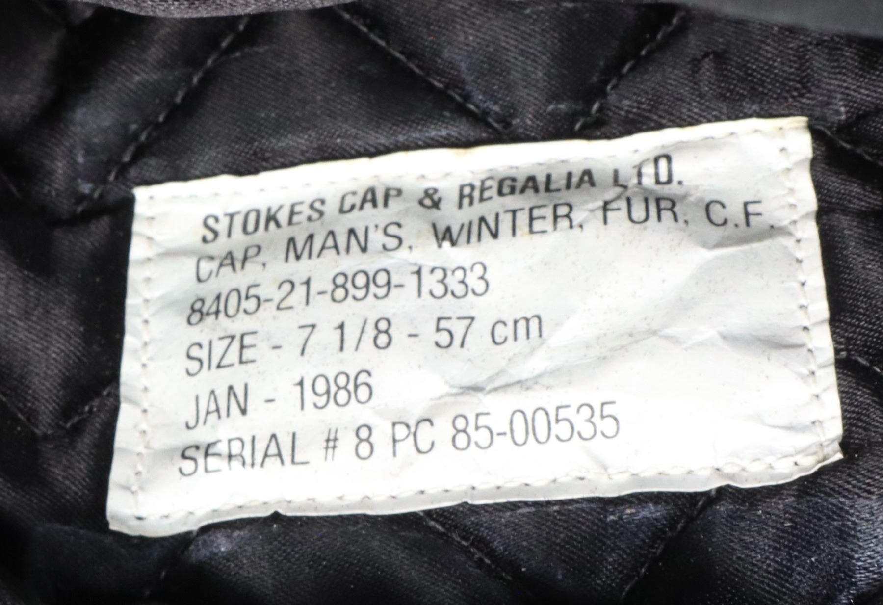 MAKERS TAG LATE COLD WAR ERA CANADIAN ALLIED FORCES CANADA MAN'S WINTER FUR CAP
