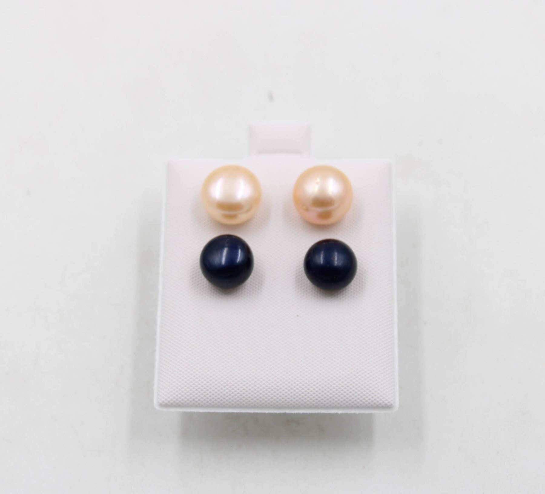 .925 STERLING SILVER /2 PAIR/BLACK & PINK/ 8 TO 9.5MM