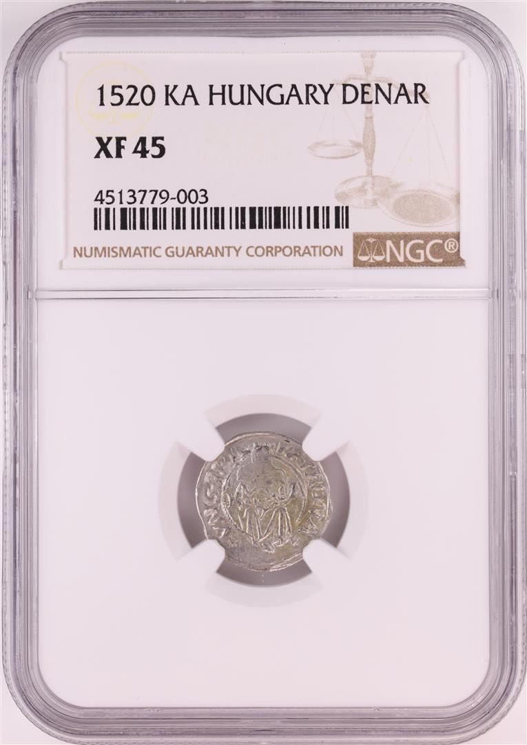 One 1520 KB Hungary Denar 'Madonna and Child' Coin NGC XF45. NGC Certified.