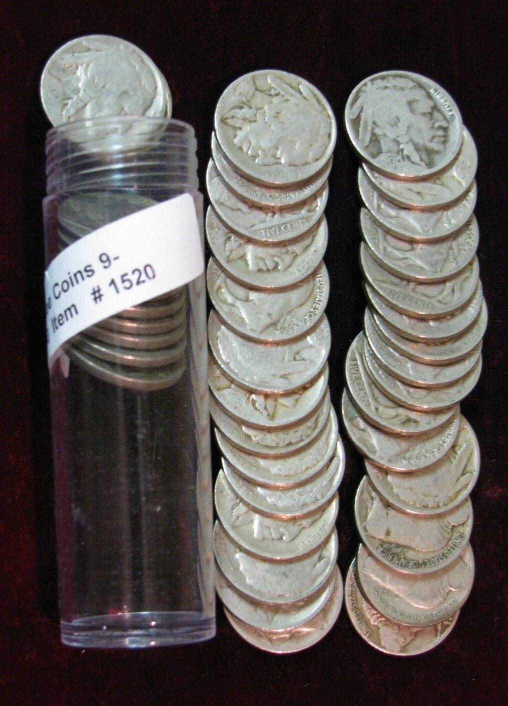 1520. Mixed roll of Old Buffalo Nickels. Some dating back to the teens and twenties.