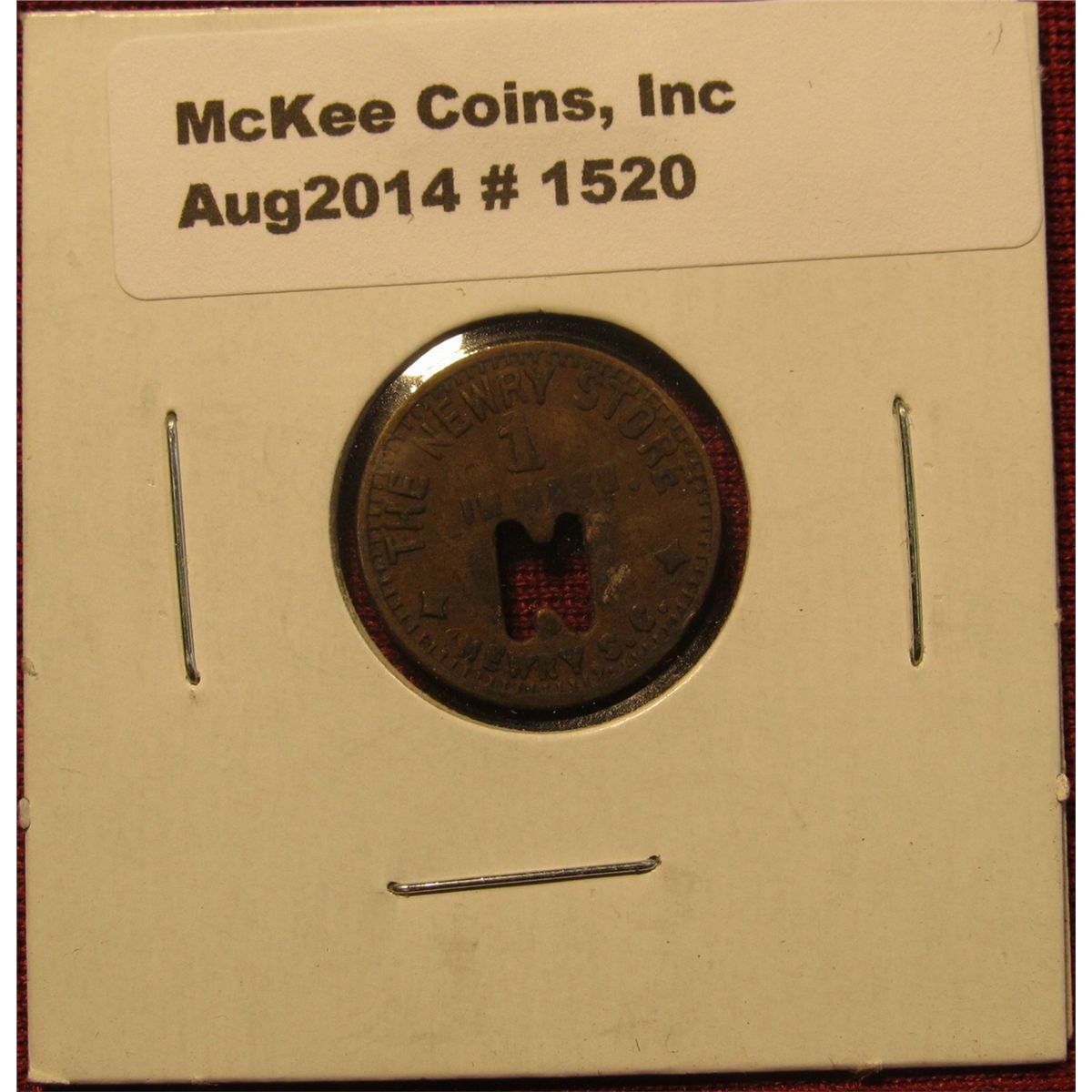 1520. The Newry Store, Newry SC – Good For 1¢ in Merchandise – company store token similar to coal c