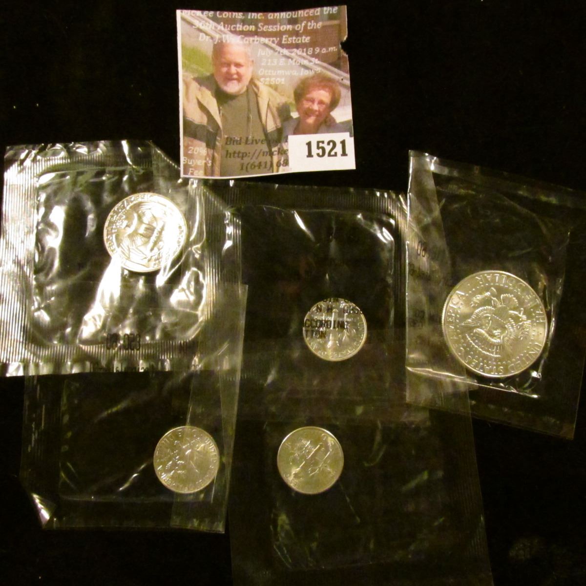 Littleton grades and holdered Silver Coins: 1955S Unc, 1959P Unc, & 1964P Unc Silver Roosevelt Dimes; 1964 D Washington Quarter, Unc.; & 1964 P Kennedy Half Dollar, Unc.
