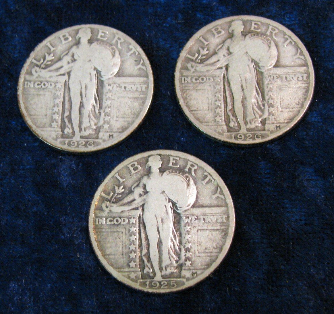 1522. 1925P, 26P, & S Standing Liberty Quarters. G-VG. Redbook value $17.00