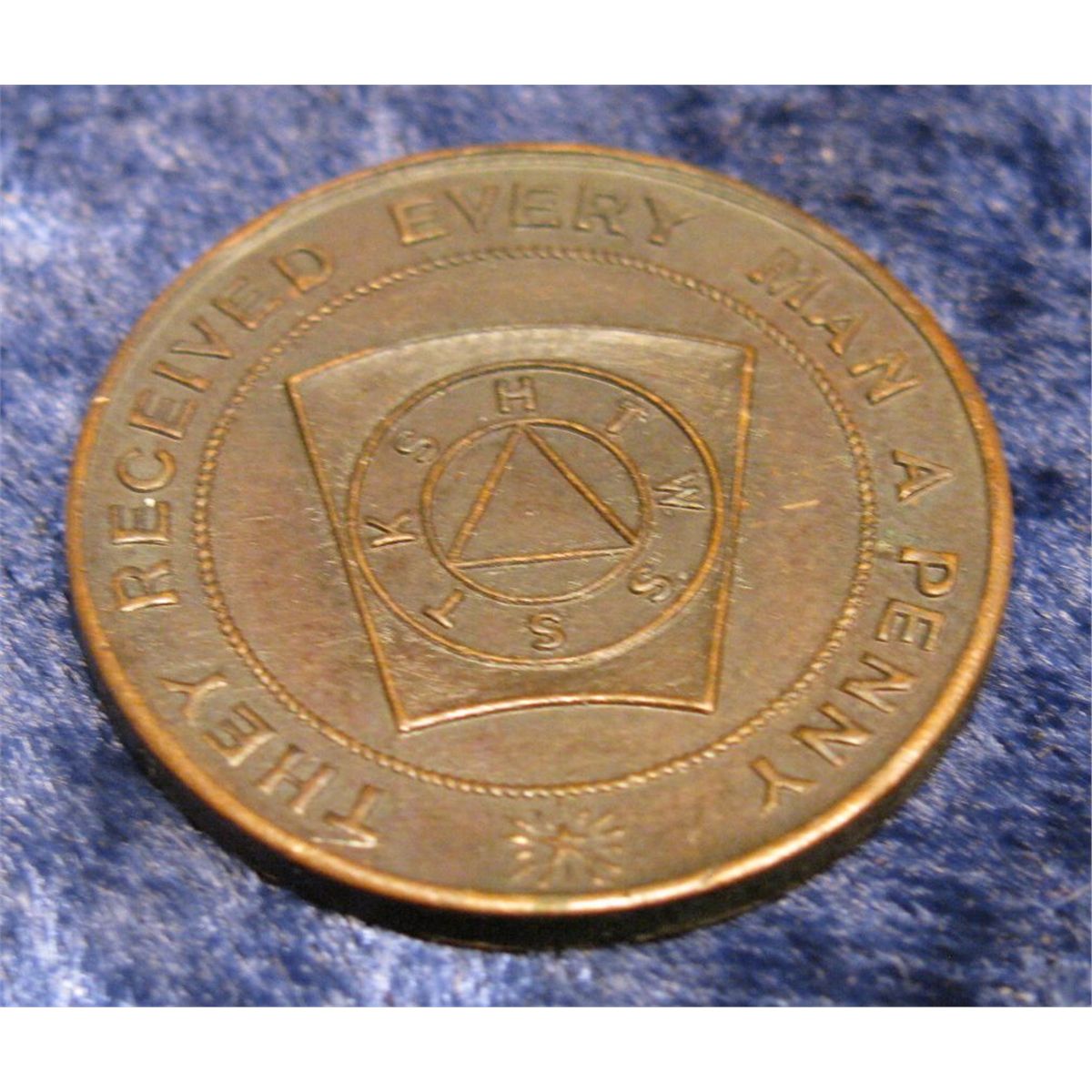 1522. Edinburgh, Scotland The Portobello Lodge Masonic Penny. VF