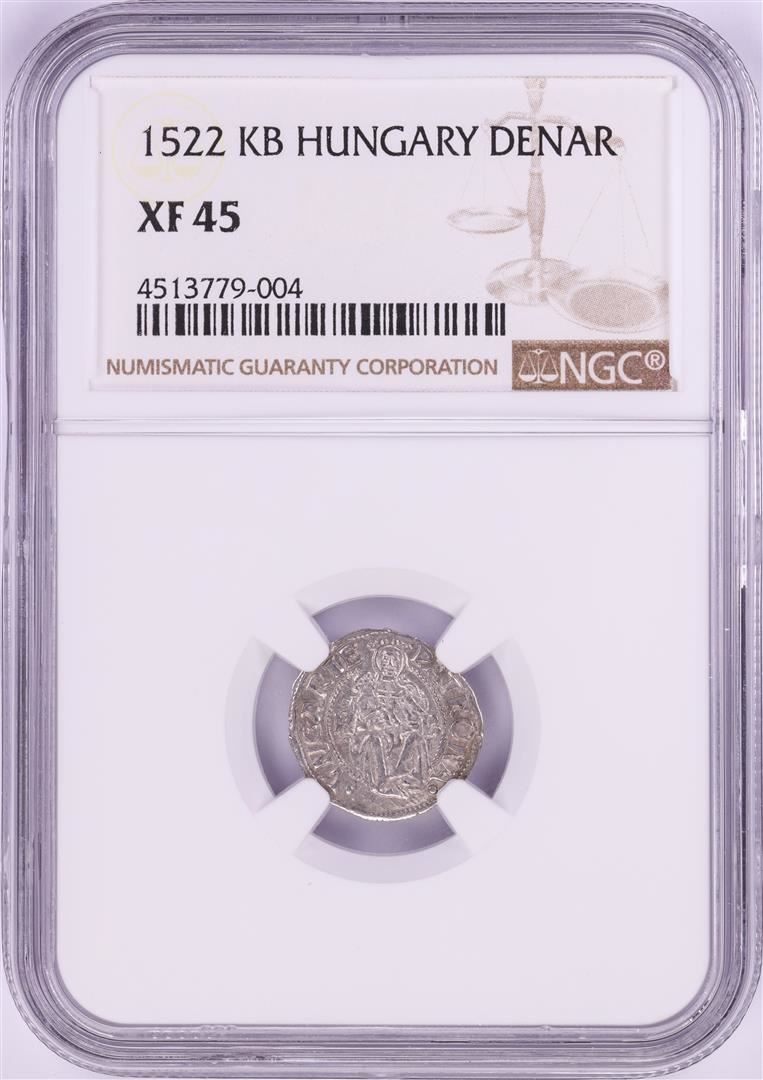 One 1522 KB Hungary Denar 'Madonna and Child' Coin NGC XF45. NGC Certified.