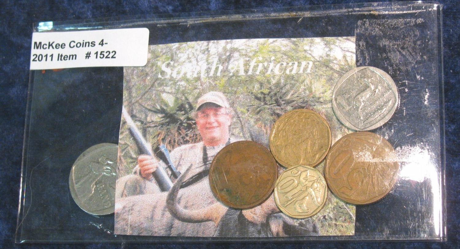1522. Six-Piece Type Set of South Africa Coins. Includes 2 Rand to Five Cent.