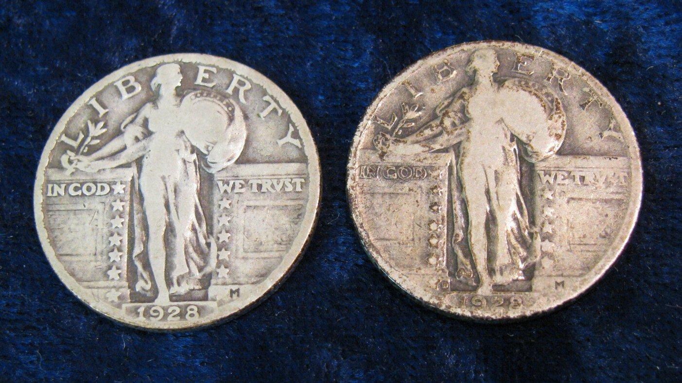 1524. 1928 P & D Standing Liberty Quarters. G-VG.