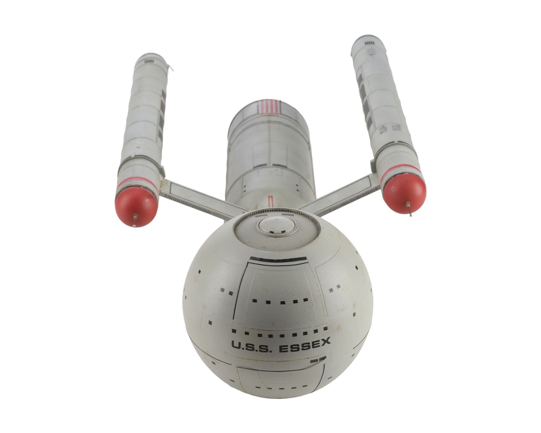 STAR TREK CHRONOLOGY (1993)/STAR TREK ENCYCLOPEDIA (1994) - Michael and Denise Okuda Collection: USS Essex Reference Model - A USS Essex reference model from the Star Trek Chronology and Star Trek Encyclopedia reference books. Gregory Jein created this reference model for use in the books, with the starship's Daedalus-class based on an early concept that Matt Jefferies created in 1964 for the Original Series Enterprise. Resin castings of this original model were later created for use in Sisko's office in Star Trek: Deep Space Nine and Star Trek: The Experience in Las Vegas.