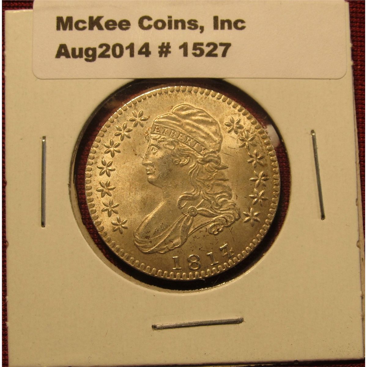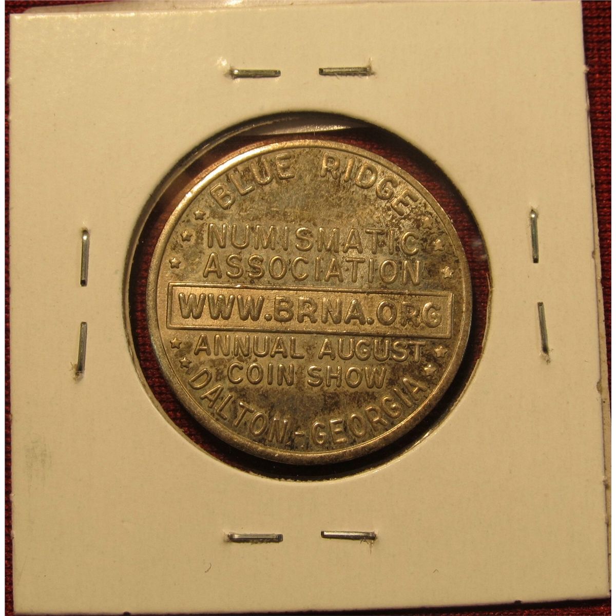 1527. 1817 over 7 over 4 Capped BustHalf Dollar advertising token for Blue Ridge Numismatic Association, Dalton, GA