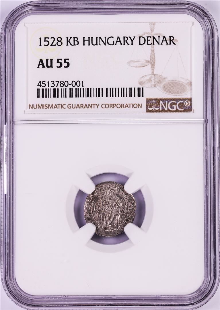 One 1528 KB Hungary Denar 'Madonna and Child' Coin NGC AU55. NGC Certified.