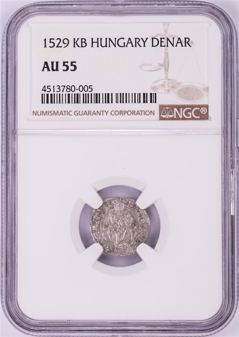 One 1529 KB Hungary Denar 'Madonna and Child' Coin NGC AU55. NGC Certified.