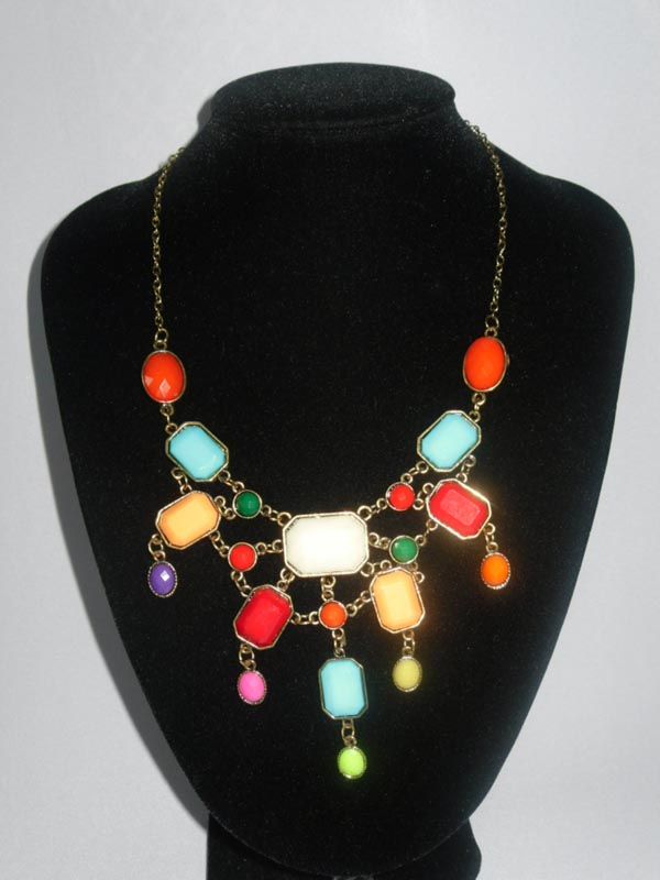 152CTW MULTICOLOR OCTAGON-OVAL BRASS NECKLACE;18INCH **|**|** 152CTW MULTICOLOR OCTAGON-OVAL BRASS NECKLACE;18INCH ; MSRP: $200