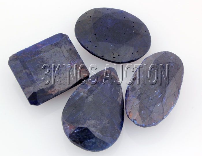 153.20ctw SapphireMixShape&SizesLooseGemstone lotof4 **|**|** 4 pcs Mix Sizes 21-28x16-21x7-9mm Natural Blue Sapphire Gemstone Oval, Pear and Emerald Shape ; MSRP: $500