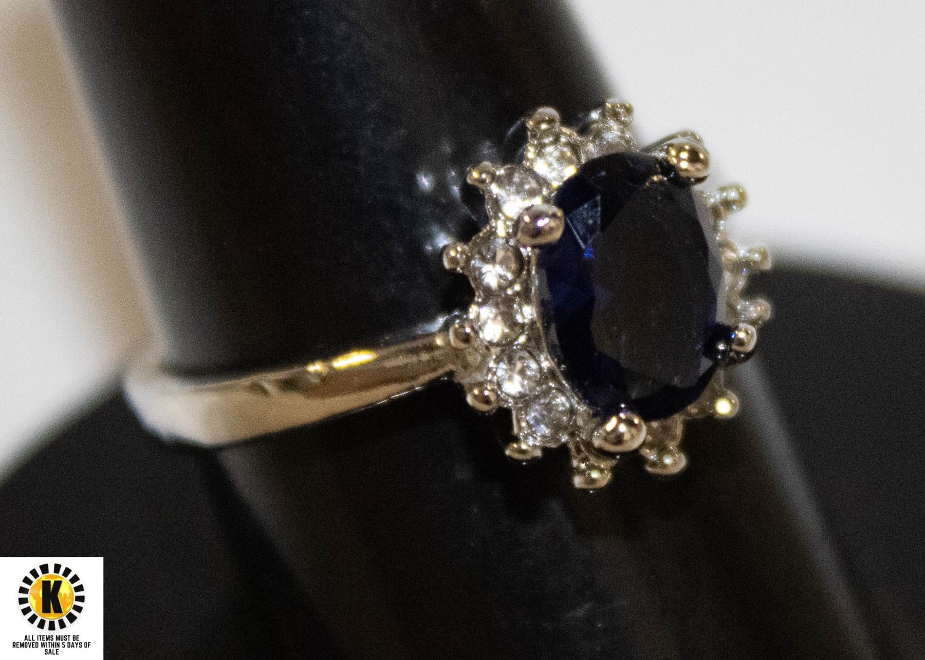 SURROUNDING HALO WITH CLEAR STONES IN SILVER TONE RING SIZE 6.5 CM