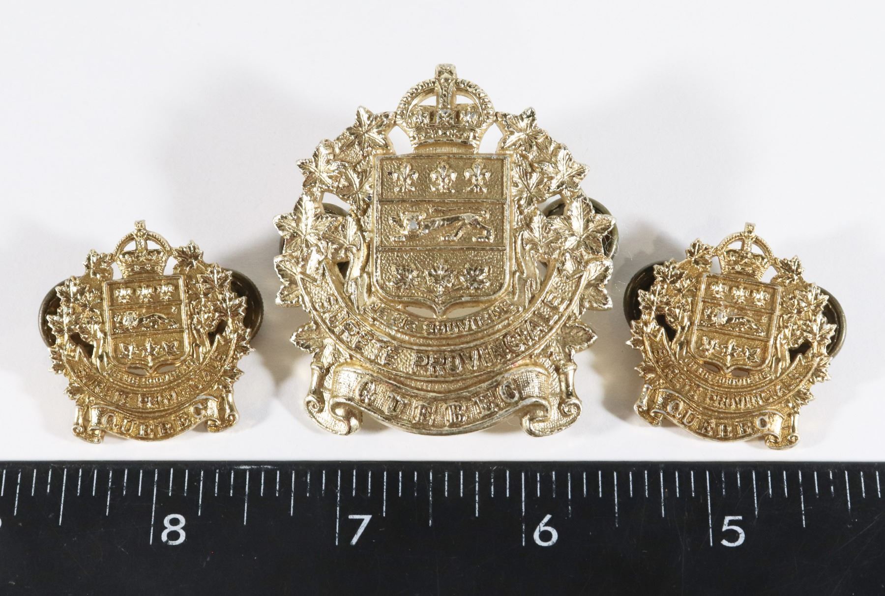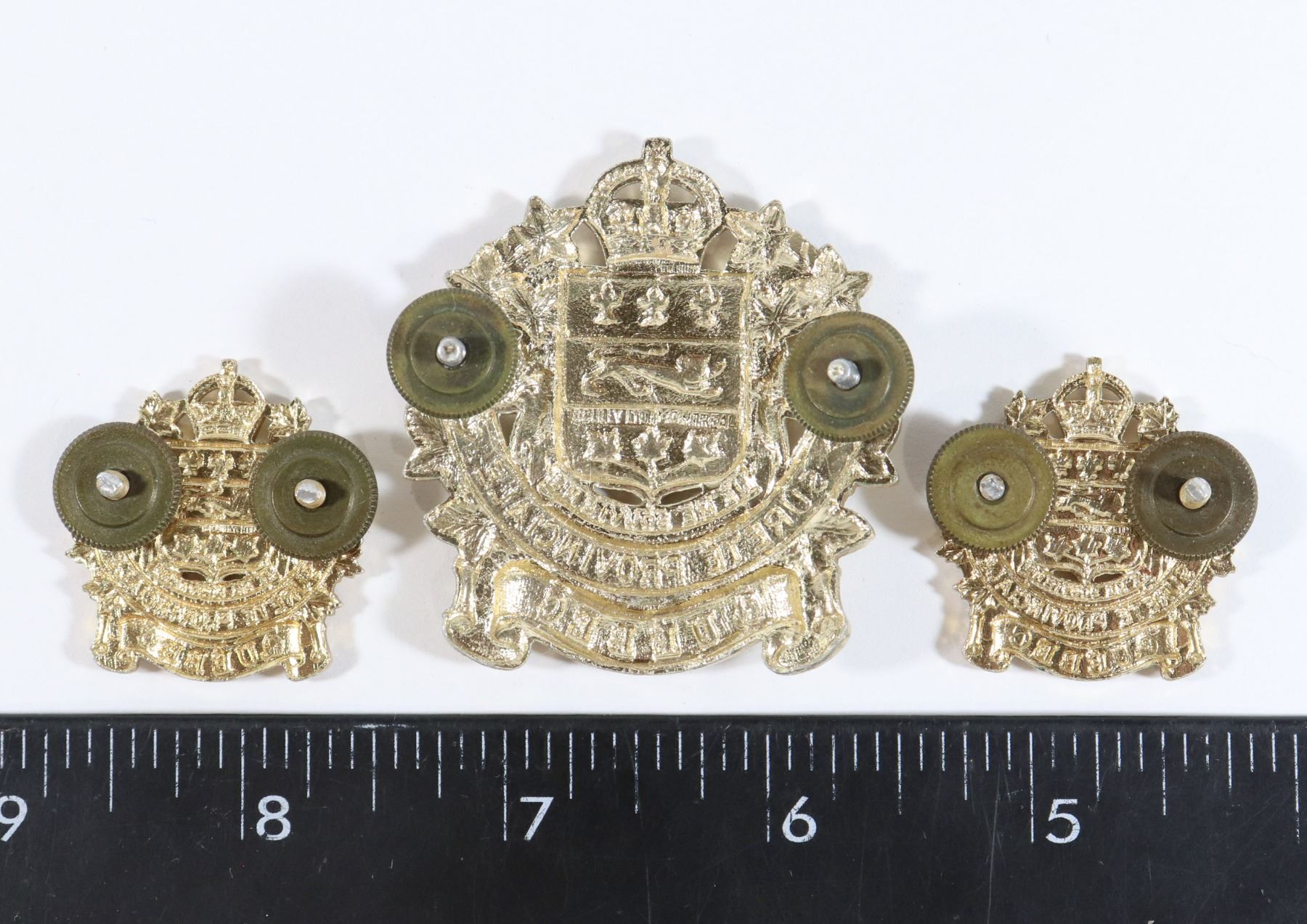 W/ COLLAR BADGES JE ME SOUVIENS STAYBRITE BADGE FABRICANT MARQUÉ SCULLY MONTREAL MAKER MARKED ON REVERSE MATERIAL VINTAGE FRENCH CANADIEN CANADA CANADIAN POLICE LAW ENFORCEMENT CAP BADGE INSIGNIA