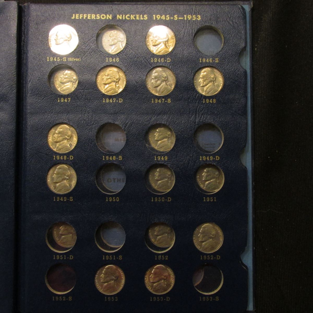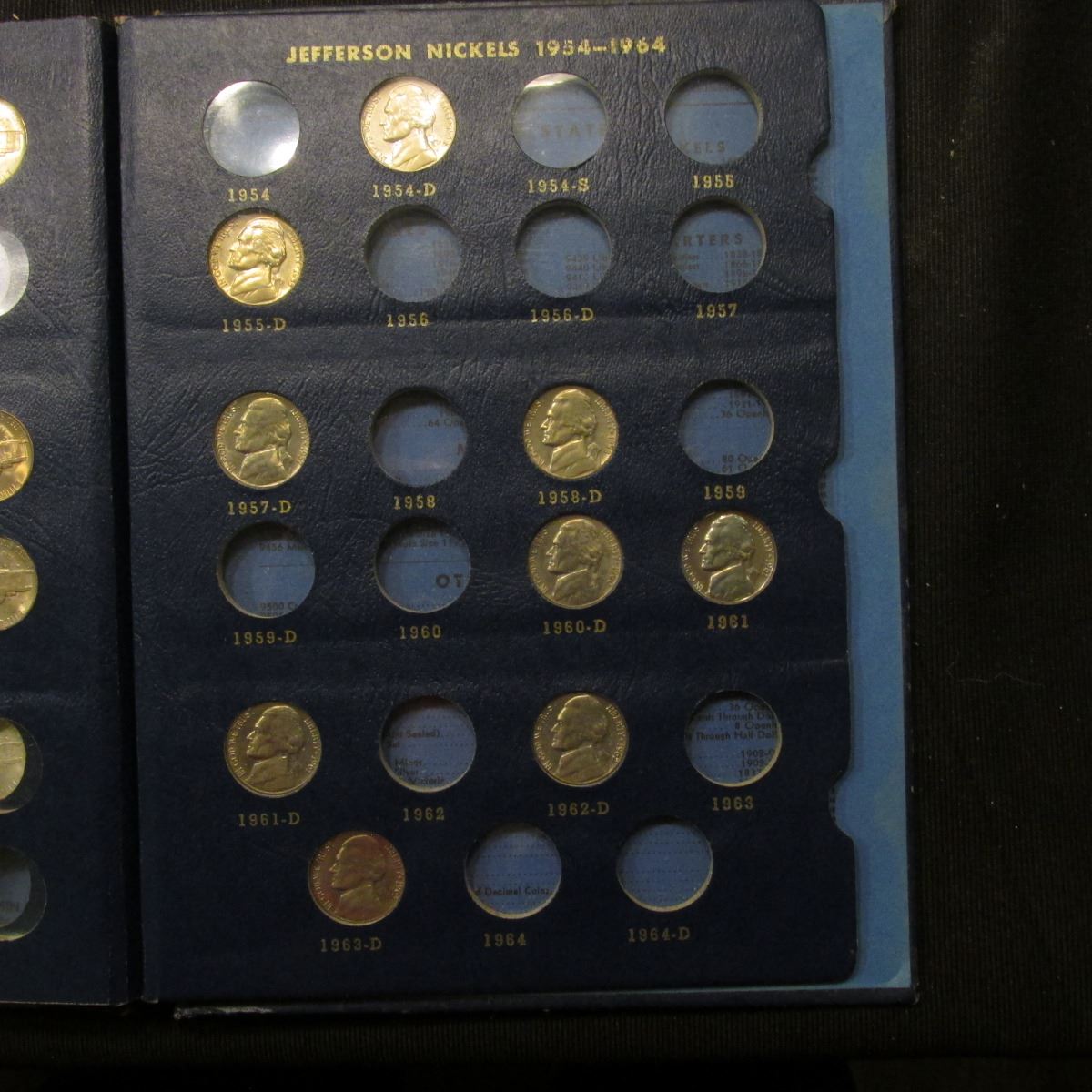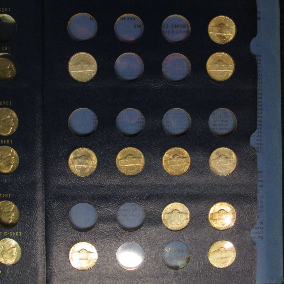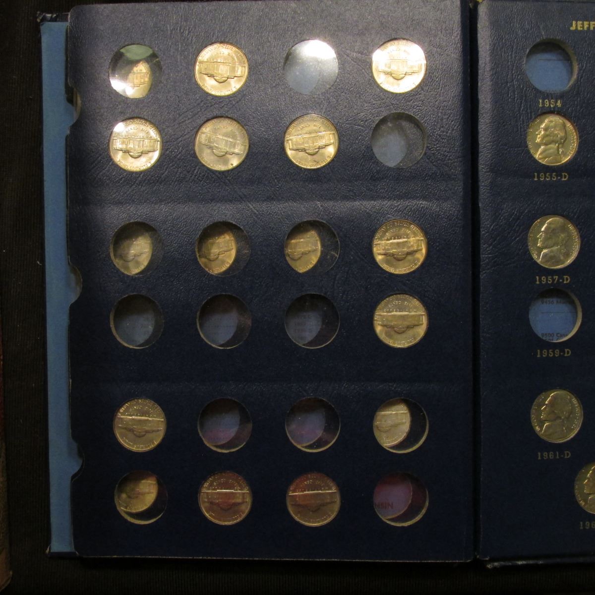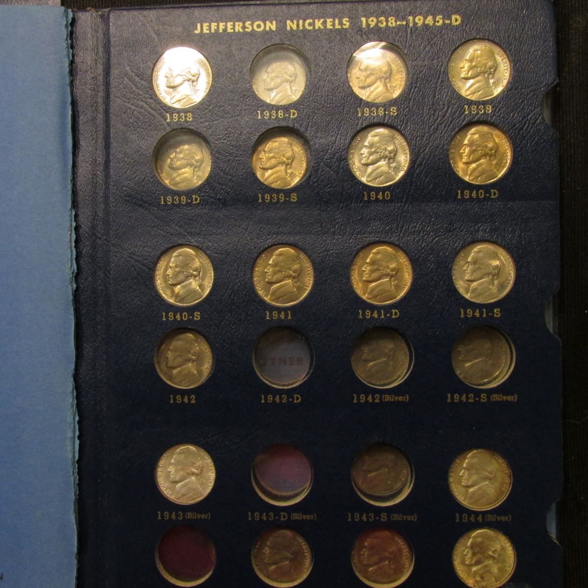 153.Whitman coin album with a partial BU Set of Jefferson Nickels, includes 1938P, 39P, 40P, D, S, 41P, D, S, 43P (silver), 44P (silver), 45D & S (silver), 46D, 47D, S, 48P, D, 49S, 52D, 53P, D, 54D, 55D, 57D, 58D, 60D, 61P, D, 62D, & 63D. All nice and Gemy.