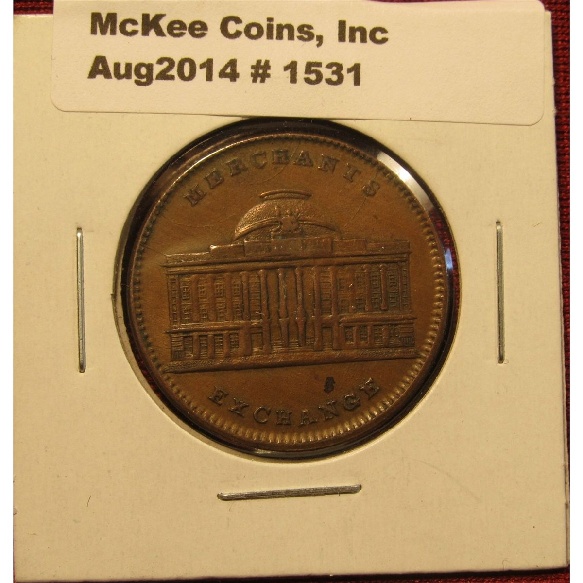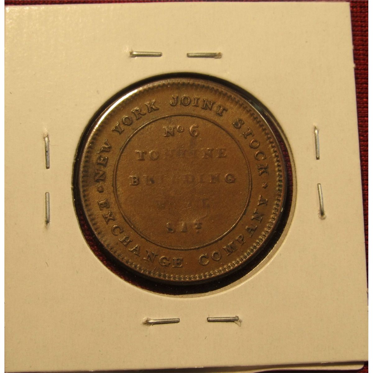 1531. 1837 Hard Times token – Merchants Exchange BU ilding / New York Joint Stock Exchange Company XF, HT-293
