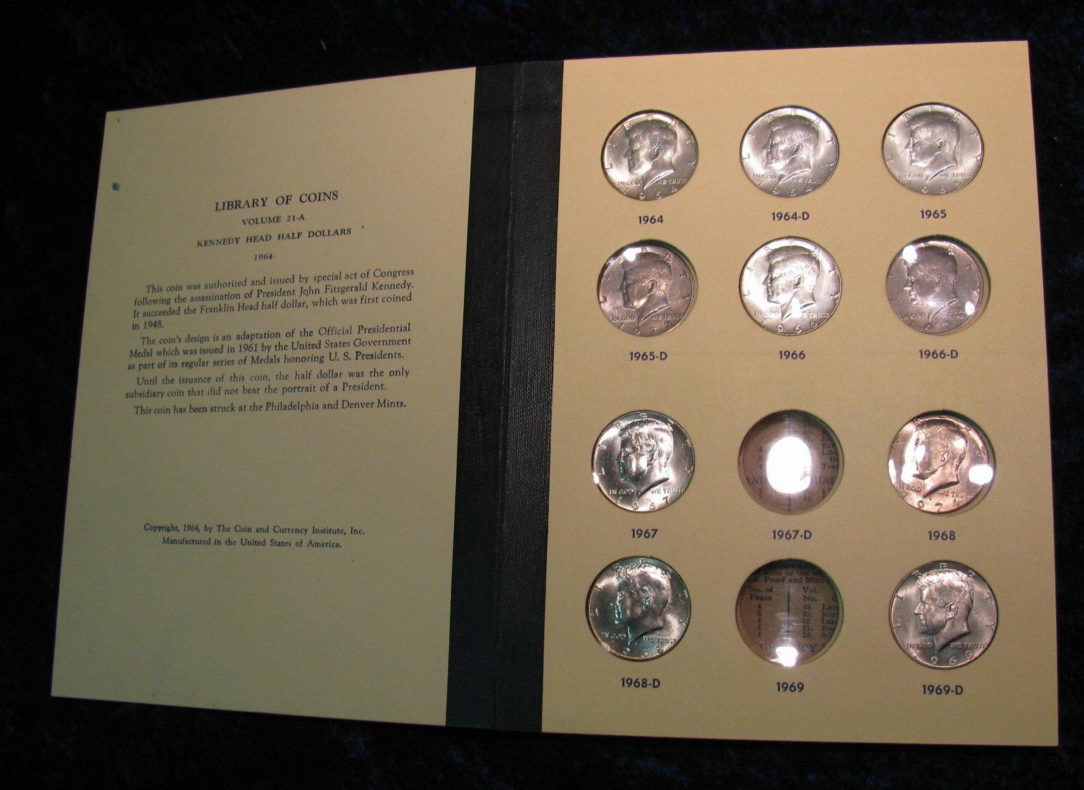 1532. 1964-76 Partial Set of Kennedy Half Dollars in a fancy Library of Coins Album that would cost nearly $30 today. Includes (2) 90% Silver, (5) 40% Silver, & (8) Clad Kennedys. All Gem BU.
