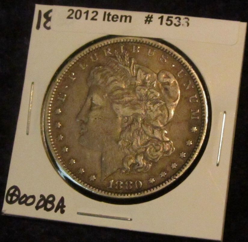 1533. 1880 P U.S. Morgan Silver Dollar. VG-8. Some damage to reverse.