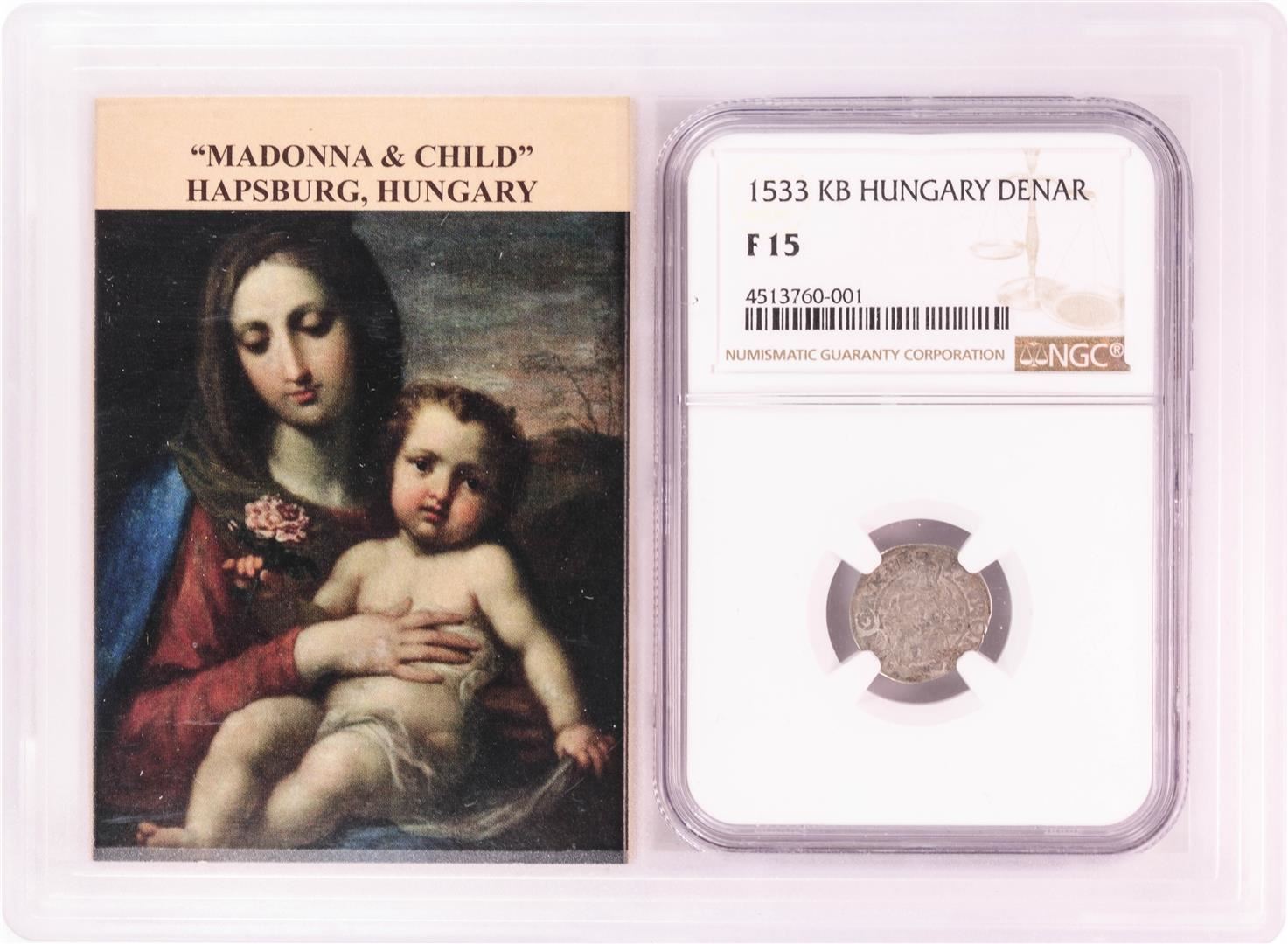One 1533 KB Hungary Denar 'Madonna and Child' Coin NGC F15 w/ Story Box. NGC Certified.