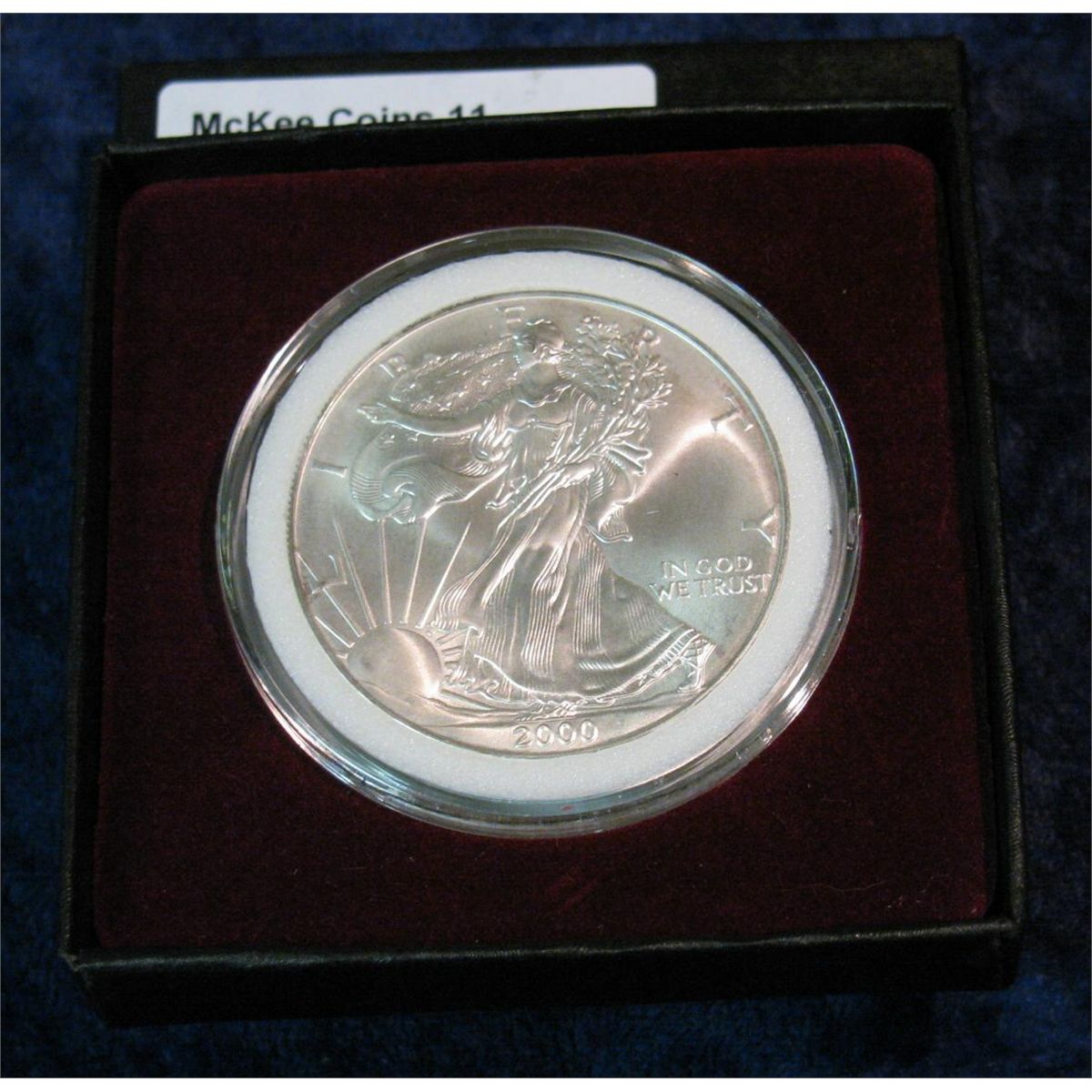 1535. 2000 American Eagle Silver Dollar in Display Case. BU.