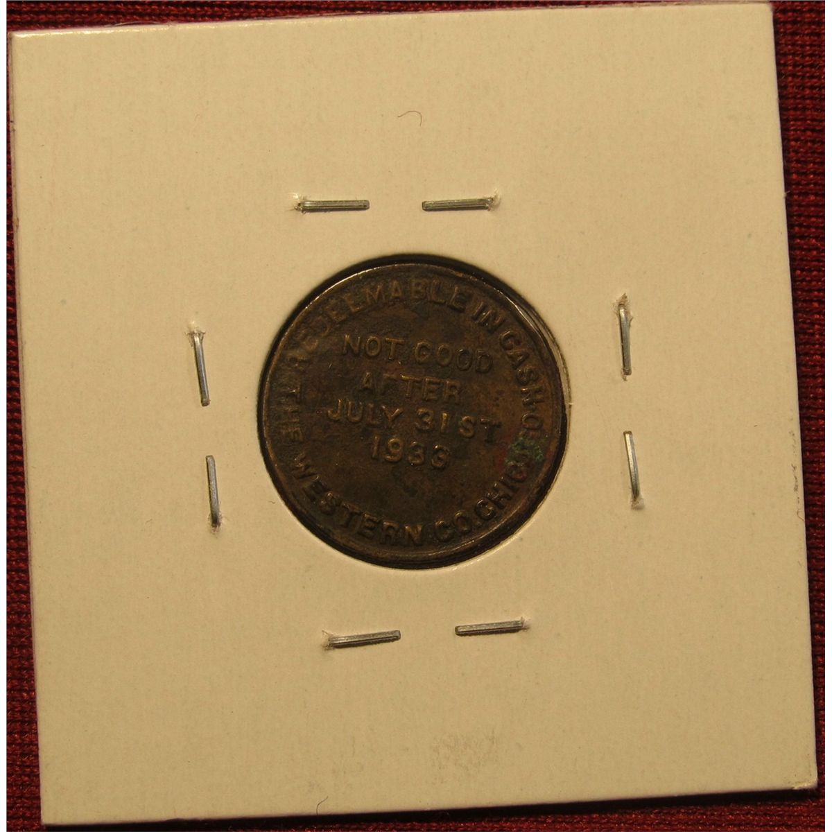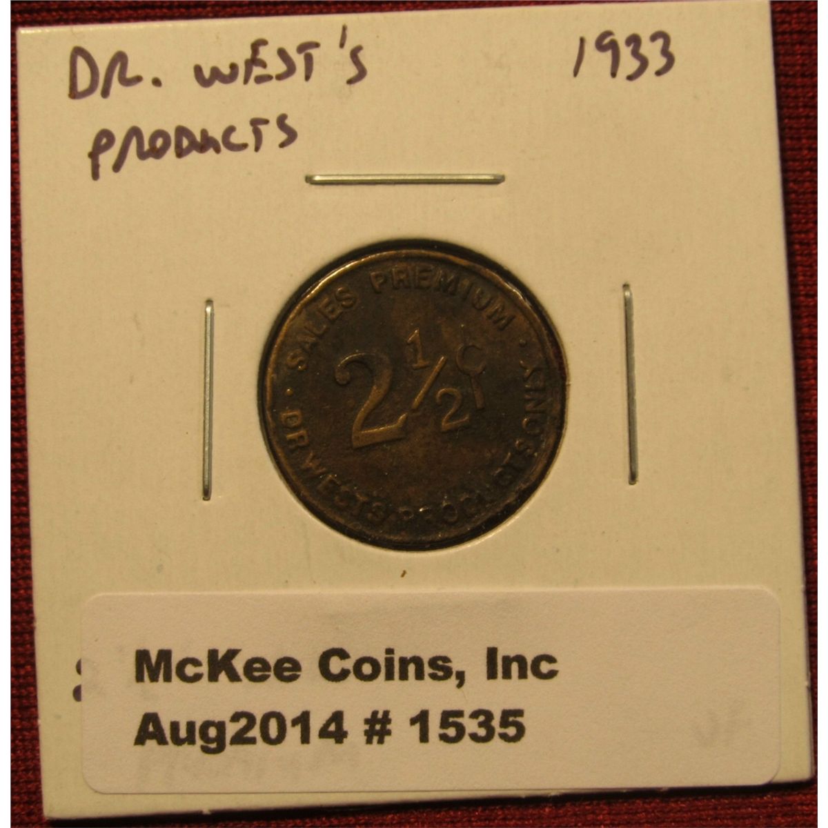 1535. Dr. West’s Sales Premium Good for 2 ½¢, not good after July 31st, 1933 VF