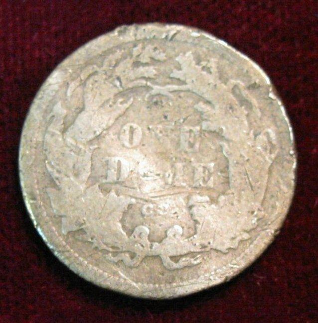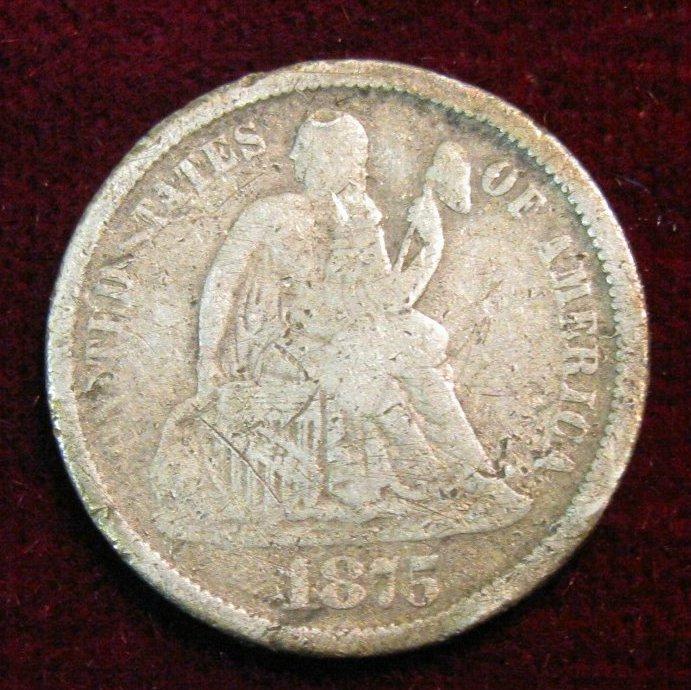 1536. 1875 Carson City Seated Liberty Dime. Partial Liberty. Light bend.