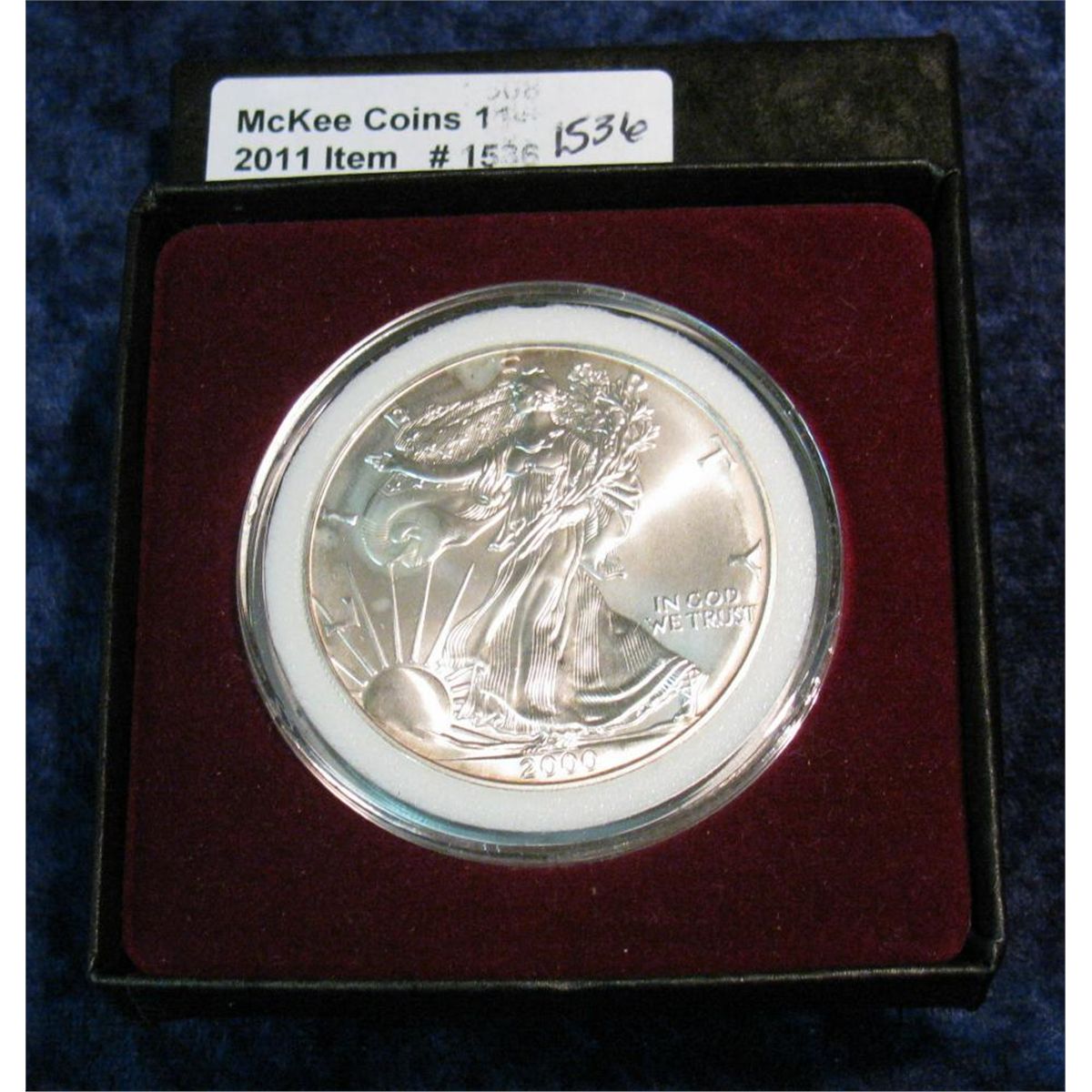 1536. 2000 American Eagle Silver Dollar in Display Case